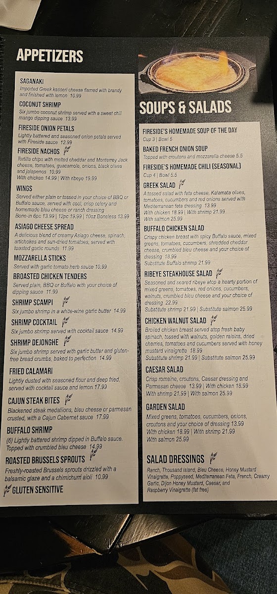 Welcome to Fireside Grille, a culinary gem located in Sugar Grove, IL, where comfort meets flavor. The extensive menu offers something for everyone, from hearty appetizers to sumptuous entrees. Diners rave about the humongous wings and delicious prime rib, served alongside generous portions of fresh salads and warm bread. Each meal comes with a delightful choice of soup or salad, enhancing your dining experience.
